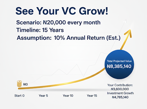 Let’s say your monthly salary is ₦300,000 and you decide to make a VC of ₦30,000 per month.